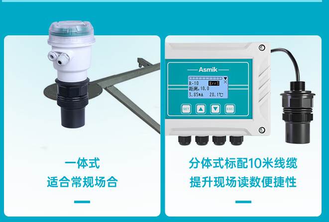 米科超声波液位计,灵活多变,支持一体式和分体式两种安装方式。一体式安装简洁高效,适用于空间有限或安装环境简单的场合;分体式安装则更具灵活性,方便用户根据实际需求进行配置和调整。无论选择哪种方式,米科超声波液位计都能稳定可靠地工作,为用户提供精准的液位测量数据,满足不同场景下的应用需求。
