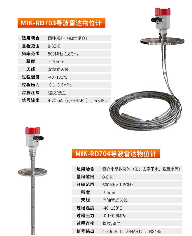 ② 固态料位的检测固态料面不平整,反射信号复杂,尤其是气动输送的粉状料位。固然理论上粉尘对雷达物位计没有影响,但数量较多的粉尘也能萌生散射,影响回波。这里可选用导波雷达物位计解决这一问题,导波雷达物位计已成功应用在成品仓的料位检测中。但导波雷达的导波缆索又容易被结实又硬的物料毁坏,在石灰岩仓料位检测中就碰到这样的问题,可选用杭州米科的高频雷达物位计,因为其发射角小,回波信号好,抗干扰性能大大增长,固态甚至于气动输送的粉料也能获得正确检测。